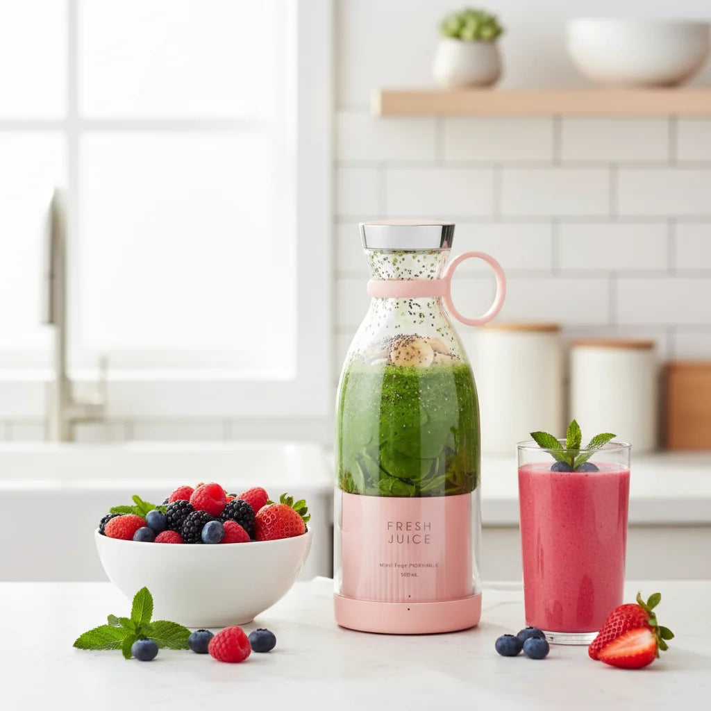 Absolutely! With its sleek, compact, bottle-like design and USB-rechargeable battery, the Blend & Go is your perfect companion for the gym, office, or travel. Freshness is always within reach!